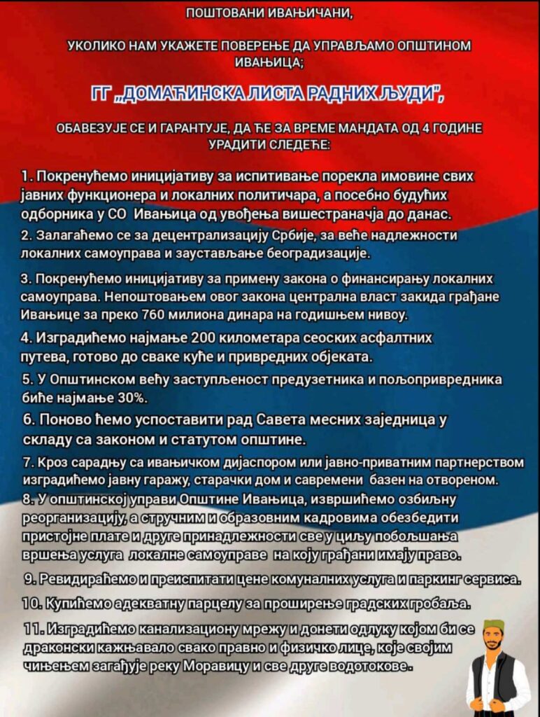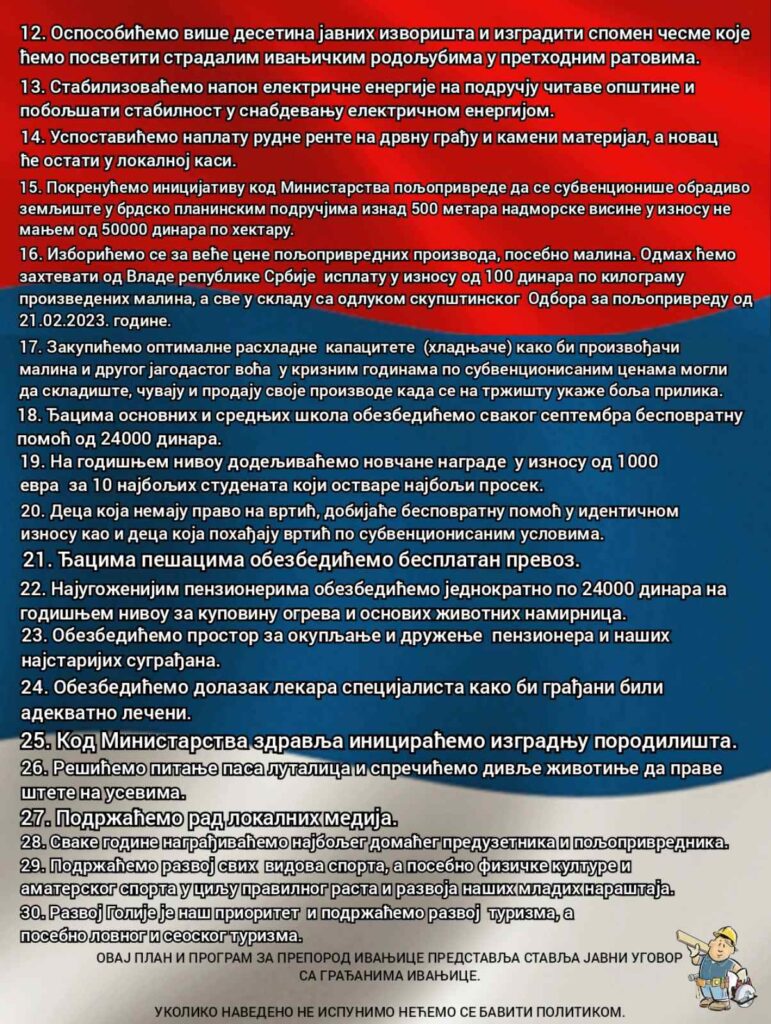 Уколико нам укажете поверење да управљамо општином Иванјица, обавезујемо се и гарантујемо да ћемо за време мандата од 4 године урадити следеће: